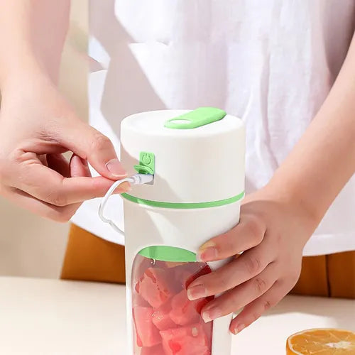 Descubre la practicidad de nuestra termolicuadora portátil recargable. Potente para licuar frutas y preparar tus bebidas favoritas en segundos, y diseñada como un práctico vaso para que tomes directamente después de licuar. Gracias a su diseño tipo termo, puedes llevarla a donde quieras: oficina, gimnasio, viajes o caminatas. Funciona con batería recargable (cable incluido), por lo que no necesitas estar conectado a la corriente para disfrutar de tus batidos donde sea. ¡La combinación perfecta de comodidad, potencia y estilo!